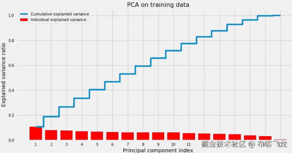 我认为我们不需要应用 PCA 之类的降维方法,因为:1)我们想知道每个特征在决定谁会离开与谁不会离开(推断)中的重要性。2)数据集的维数适当(17 个特征)。然而,很高兴看到需要多少主成分来解释数据中 90%、95%和 99%的变化。