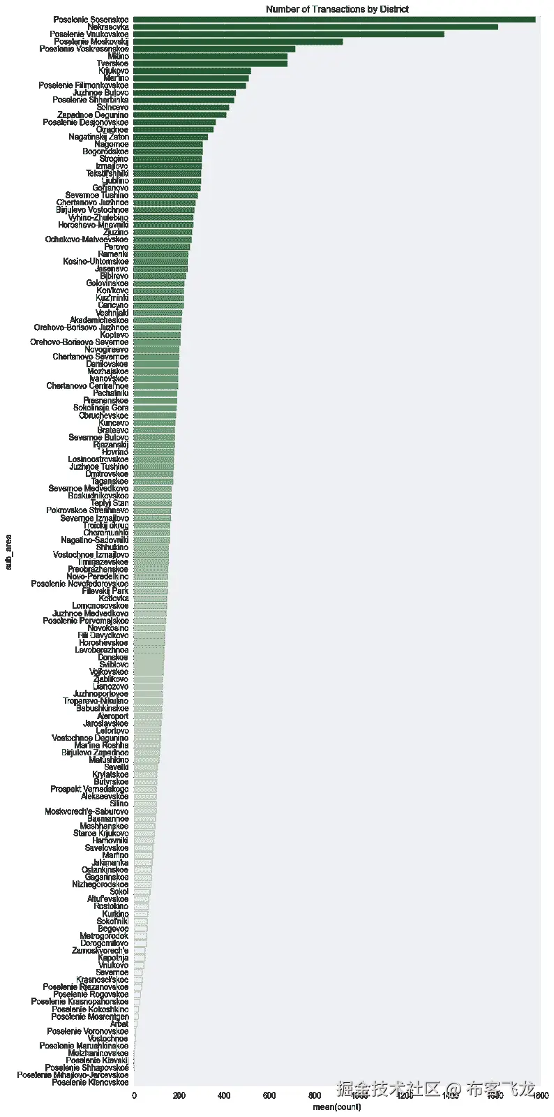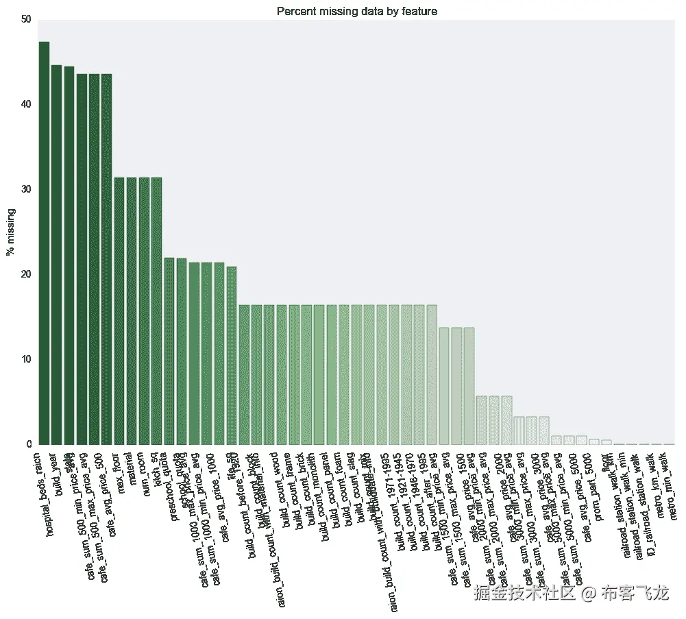 在看了所有的数据后,我决定进行一些特征工程。我通过从建造日期中减去年份创造了“建造年代”。我想看看一些定量指标,比如居住面积与总面积的比率,以及厨房面积与总面积的比率。接下来,我想看看大楼的楼层数与大楼的楼层数之比。最后我想看看这个单元离顶楼有几层。