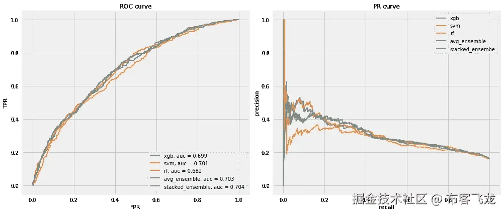 最后,让我们打印出到目前为止我们训练的所有分类器的测试准确率,并绘制 ROC 曲线。然后我们将挑选 ROC 曲线下面积最大的分类器。