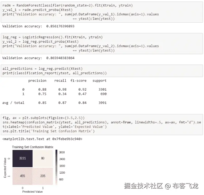 6。 预测建模-这是一个二元分类问题。输出只有两种可能,要么是(1) 要么否(0)。有很多分类算法,那么我们如何知道哪一个是最好的呢?我们没有。这是需要经验和专业知识的。不过,别担心,我们还有工作要做。我们可以将多种算法应用到我们的数据点上,然后评估模型。这样我们可以选择误差最小的最佳模型。首先,让我们导入所有必要的库