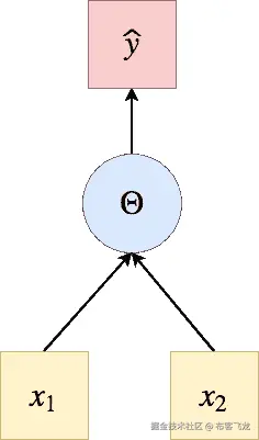 该图与以下计算相关: ŷ=θ(w1 * x1+w2 * x2+b