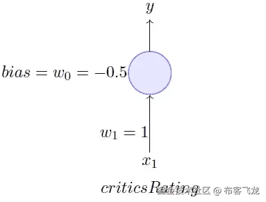 正如我前面提到的,我们今天使用的人工神经元与我们看到的感知器略有不同,区别在于激活功能。给你。有些人可能会说一个感知器使用的阈值逻辑非常苛刻。例如,如果你看一个决定我是否要看电影的问题,只基于一个实值输入( x_1 = 评论),如果我们设置的阈值是 0.5(w _ 0=-0.5)和*【w _ 1***= 1,那么我们的设置将是这样的:**