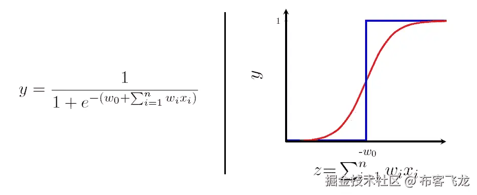 z 值越过阈值(- w_0 )时会有这种决策的突变(从 0 到 1)。对于大多数真实世界的应用,我们期望一个从 0 到 1 逐渐变化的更平滑的决策函数。