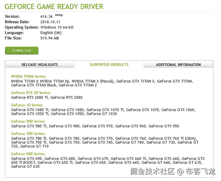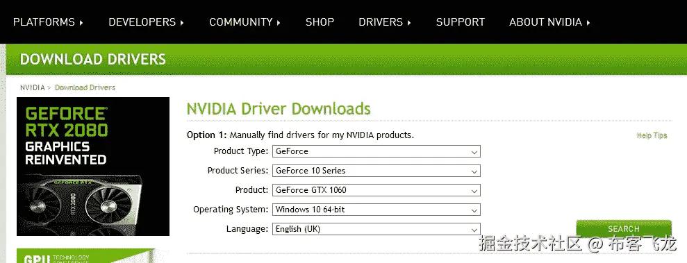 如果你购买了新的 Nvidia GPU 驱动程序,会附带一张驱动程序光盘,但是,当你得到它时,它可能已经过时了。另一种选择(也可能是更好的选择)是直接从 Nvidia 网站这里下载驱动软件。Geforce GTX 1060 驱动程序软件被列为 Geforce 10 系列的一部分,如图 9 所示。