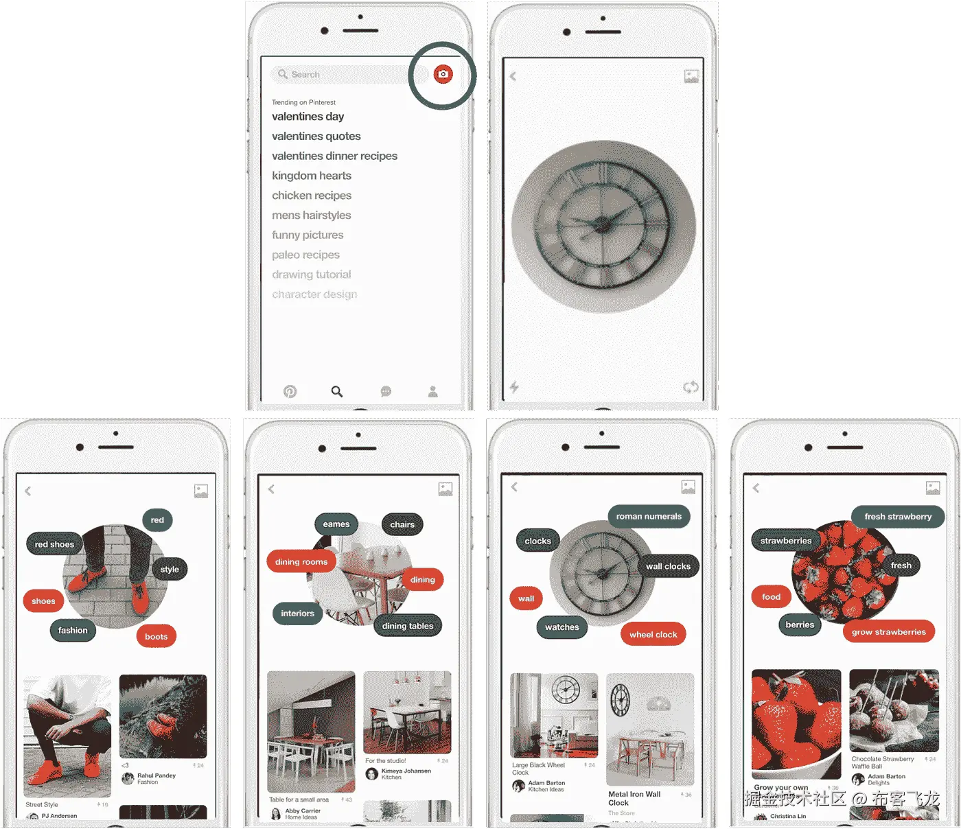 2016 年夏天,随着 Pinterest 推出 对象检测 ,视觉搜索得到了发展,它可以实时找到一个大头针图像中的所有对象,并提供相关结果。此后,视觉搜索成为其最常用的功能之一,每月有数亿次视觉搜索,检测到数十亿个物体。