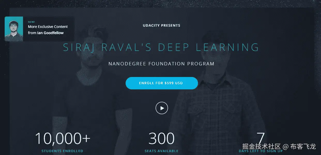 该计划与 Siraj 一起,为具有一些数学和编程背景的人提供了深度学习领域的广泛概述。利用每周视频、独家项目以及专家反馈和评论,向学生教授这种塑造未来技术的基础。当前注册已结束,但您可以加入他们的等待列表,以便在下次注册开始时得到通知。