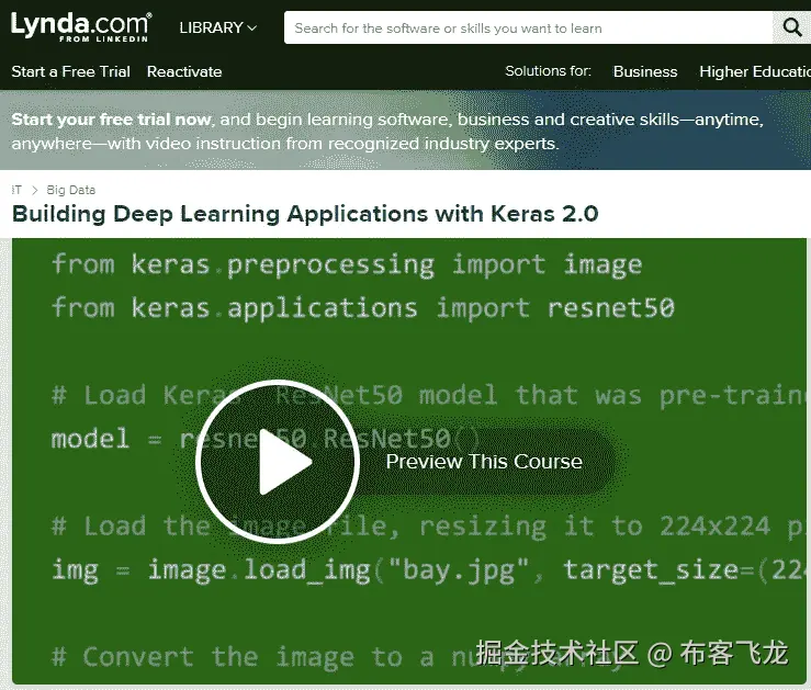 该课程于 2017 年 8 月 1 日发布,教授如何安装 Keras,并使用它建立一个简单的深度学习模型。探索 Keras 中包含的许多强大的预训练深度学习模型以及如何使用它们。了解如何部署 Keras 模型,以及如何在 Keras 和 TensorFlow 之间传输数据。