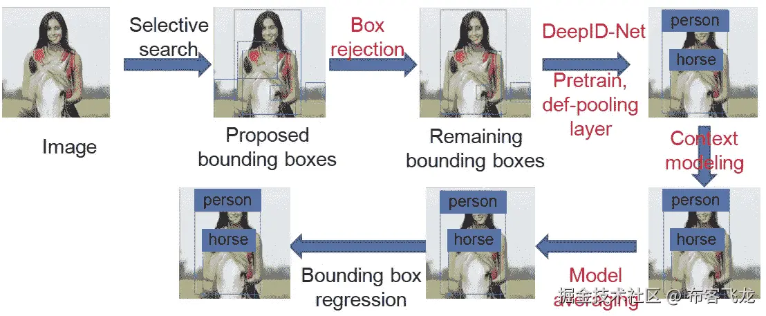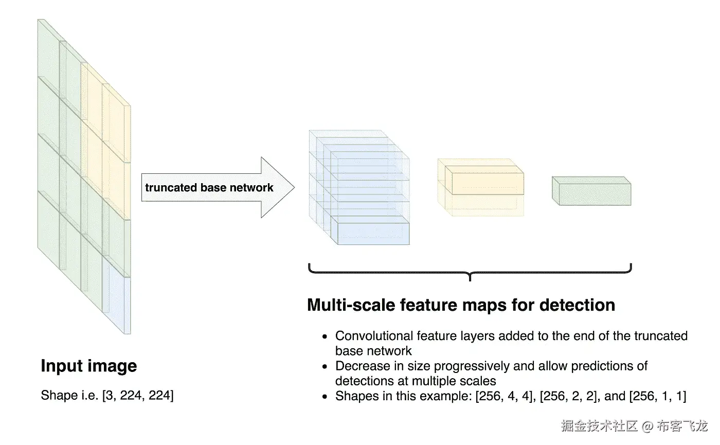 在分类中,传统上,输入图像被缩小并经过卷积层和全连接(FC)层,并输出输入图像的一个预测标签,如下: