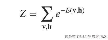 Z 这是配分函数,通过对所有可能的可见和隐藏向量对求和得出: