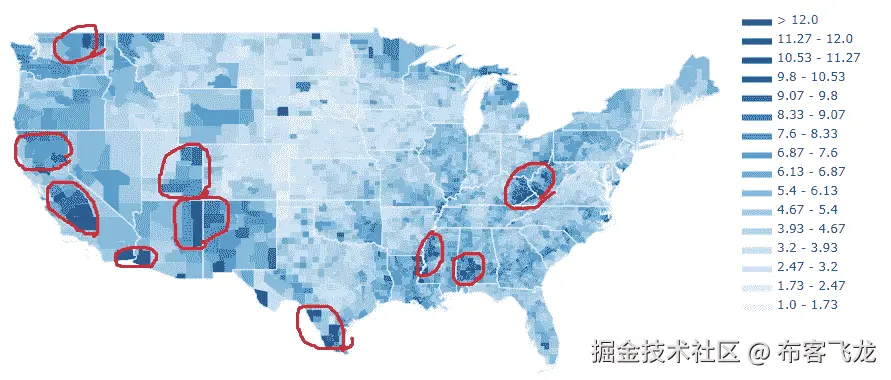 - 基尼系数:决策树在分割每个节点时试图最小化的一种度量。表示根据样本在节点中的分布,从节点中随机选择的样本被错误分类的概率。