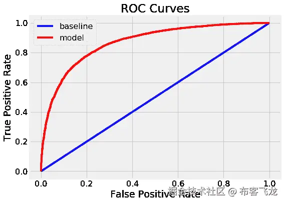 这是一个不平衡的分类问题,因此准确度不是一个合适的度量。相反,我们将测量曲线 (ROC AUC)下的接收器操作特征面积,这是一个从 0(最差)到 1(最好)的测量值,随机猜测得分为 0.5。我们也可以绘制 ROC 曲线来评估模型。
