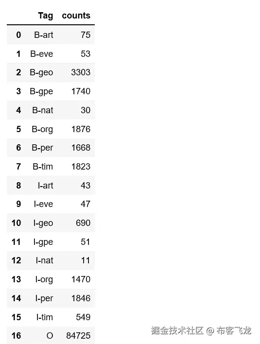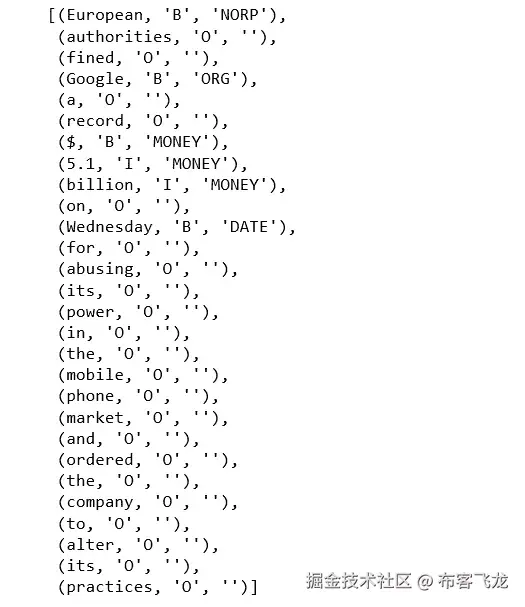 - O 标记表示令牌不属于任何块(外部)。
