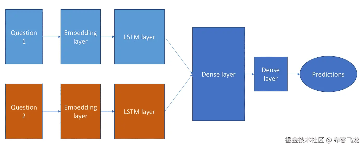 question1 + question2,问题 2 的输入是question 2 + question 1;事后看来,这完全有道理,因为问题的顺序与我的网络是否认为它们是重复的没有关系,这很容易增加我的网络可用的训练数据量。 - 寻找数据集中存在但不明显的额外数据可以显著提高我的网络性能。与其盲目地建立一个网络并把数据扔向它,不如看看数据集来判断什么可能是重要的。