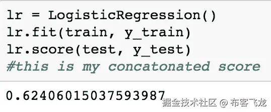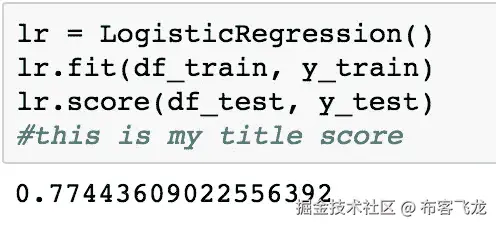 我们的最后一步是在 X_train 和 y_train 上拟合我们的模型,然后在 X_test 和 y_test 上测试我们的模型。lr.score(X_test,y_test)让我们知道我们的模型执行得有多好。在这种情况下,它大约有 75%准确性。