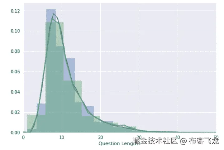 为了找到最佳问题长度,让我们看看问题长度在整个数据集中是如何变化的:
