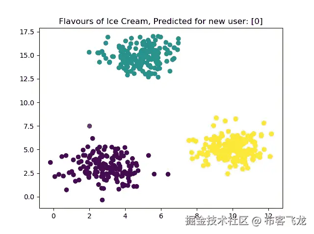 假设我们有一家冰淇淋店,我们的每一位顾客都被表示为 2D 网格中的一个坐标。因此,x 值在[0–6]和 y 值在[0–7.5]范围内的人喜欢紫色冰淇淋等。现在,一个新用户带着坐标[2,7.5]、[8,15.5]和[20,11]进来。我们应该向我们的新顾客推荐什么口味的冰淇淋?我使用的一个简单方法是建立一个 KNN(邻居值为 3 ),让算法为我们预测味道。