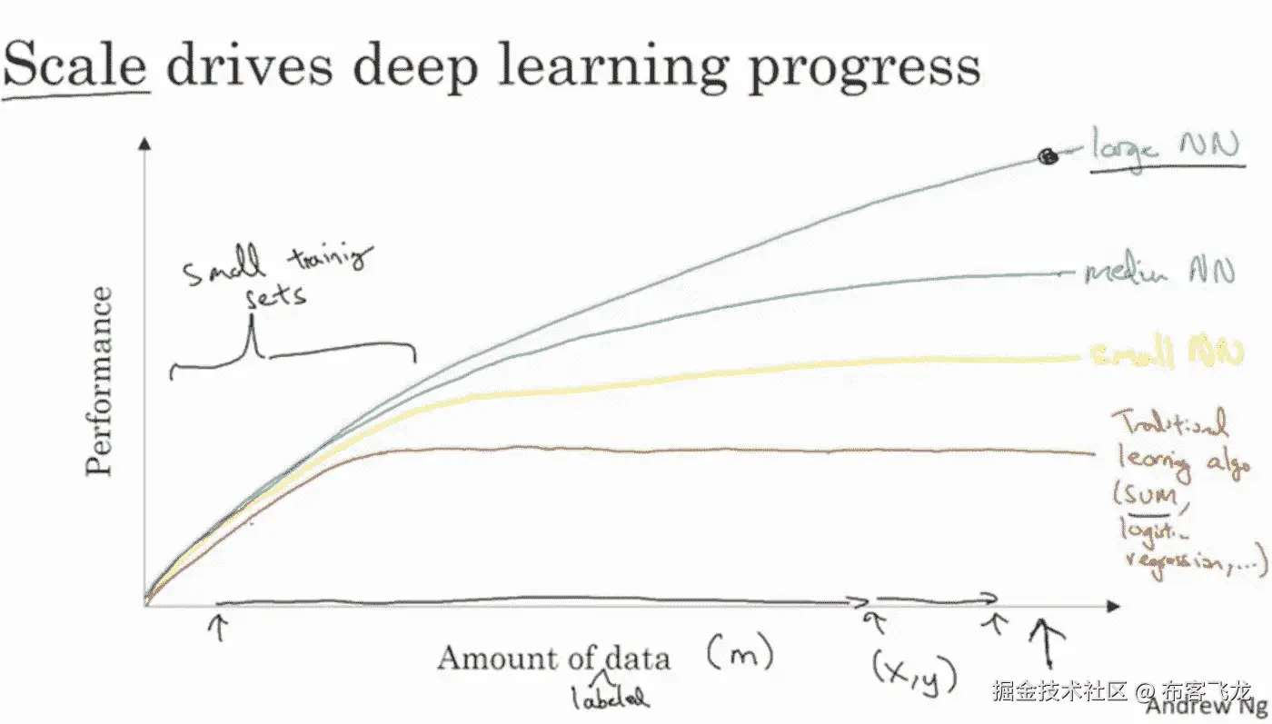 此外,有许多算法上的创新使得 DNN 的训练速度大大提高。例如,从 sigmoid 激活函数切换到 RELU 激活函数对诸如梯度下降的优化过程具有巨大的影响。这些算法上的改进让研究人员可以更快地迭代整个想法->实验->代码周期,从而带来更多的创新。