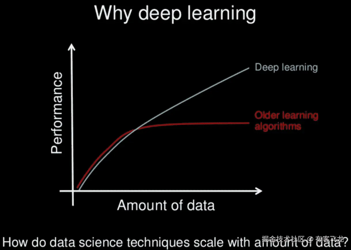 90%的数据是在过去 2 年中收集的。深度神经网络(DNN 的)能够利用大量的数据。因此,DNN 氏症可以主宰较小的网络和传统的学习算法。