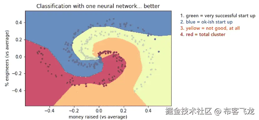 他还对辍学给出了一个有趣的直观解释。在参加这个课程之前,我认为辍学基本上是在每次迭代中杀死随机的神经元,所以这就好像我们在用一个更小的网络工作,这是更线性的。他的直觉是从单个神经元的角度看待生命。
