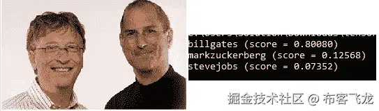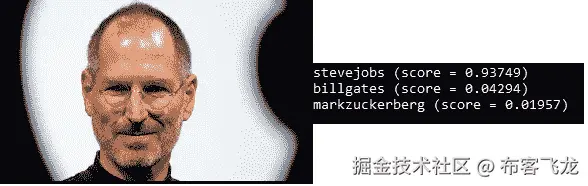 这是一个棘手的问题!Inception 是为单标签图像分类而训练的,这意味着它的总得分为 1。多标签分类是不可能的,而且由于我们的两个类都显示在图像中,所以都不可能得到高分。如果我想让这张图片更像“史蒂夫·乔布斯”,我必须为他的班级使用更准确、更大的训练集。