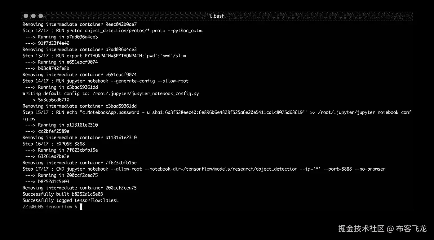 **RUN** echo "c.NotebookApp.password = u'sha1:6a3f528eec40:6e896b6e4828f525a6e20e5411cd1c8075d68619'" >> /root/.jupyter/jupyter_notebook_config.py**EXPOSE** 8888**CMD** ["jupyter", "notebook", "--allow-root", "--notebook-dir=/tensorflow/models/research/object_detection", "--ip=0.0.0.0", "--port=8888", "--no-browser"]