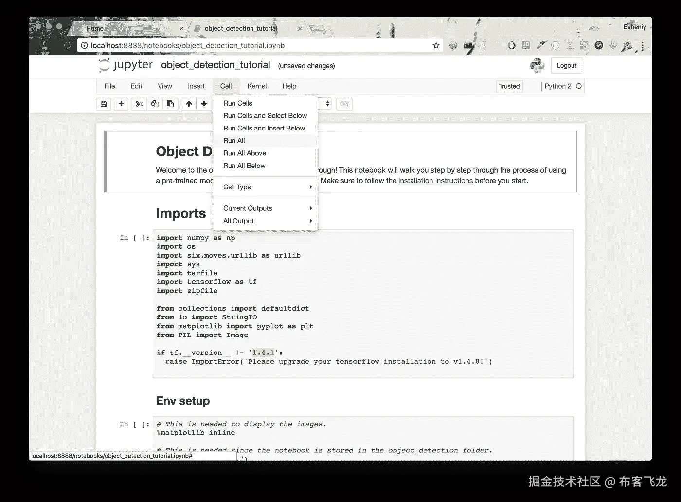 目前就这些。由于我们要运行 对象检测示例 我们需要安装所有的依赖项。所有步骤你可以在 安装页面 上找到。