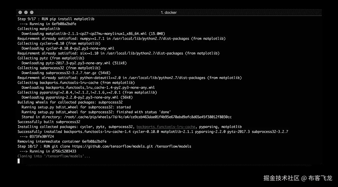 **FROM** "ubuntu:bionic"**RUN** apt-get update && yes | apt-get upgrade**RUN** mkdir -p /tensorflow/models**RUN** apt-get install -y git python-pip
