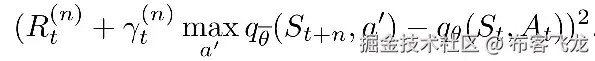 其中 n 是通常设置为 3 或 5 的超参数。这里的想法是通过从转换序列中引导来提高目标精度,这是一种位于时间差异中间的方法- >蒙特卡罗谱。你可以在这本教科书的第七章的中读到更多这方面的内容。