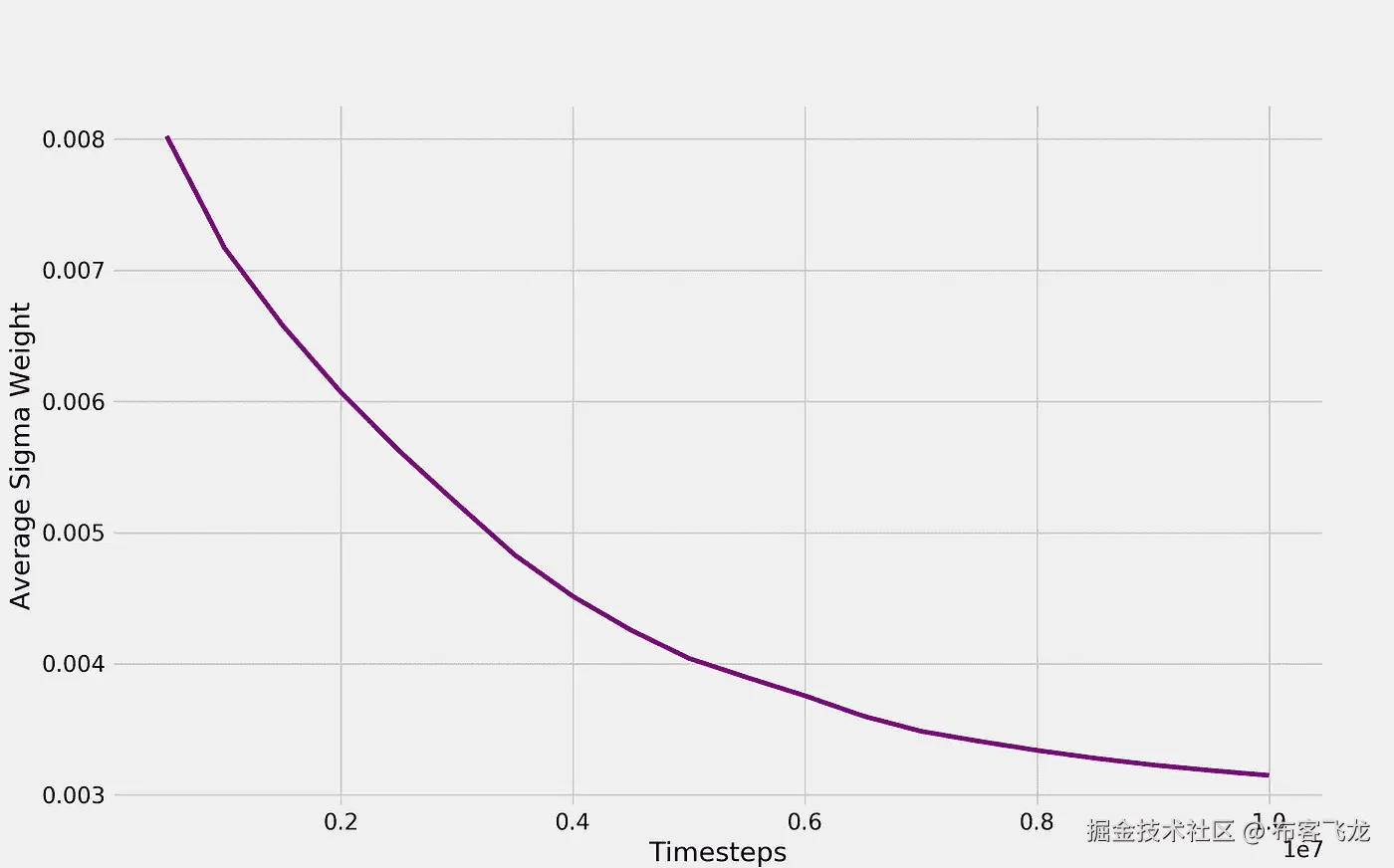 其中除了ε项之外,所有参数都是可学习的,ε项是在每个训练和推断步骤之前使用分解的高斯噪声生成的。然后,代理可以学习操纵其他变量,特别是两个变量,但它可以按照环境的要求,不受我们的干扰。为了说明这一点,我们可以绘制一段时间内的平均西格玛权重图。这是 1000 万步训练跑的结果,我们稍后会详细介绍: