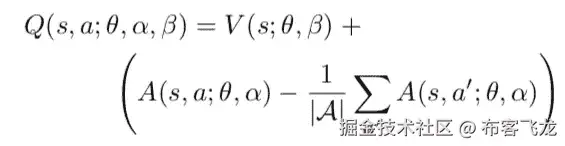 其中α和β分别代表优势流和价值流的参数。现在网络可以使用其所选动作的知识将优势函数推至 0,使得 Q( s,a )近似等于 V( s )。