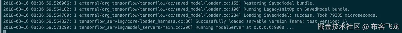 --rest_api_port: Tensorflow 服务将在端口 8500 上启动 gRPC ModelServer,REST API 将在端口 9000 上可用。--model_name:这将是您用来发送 POST 请求的服务器的名称。您可以在此键入任何名称。