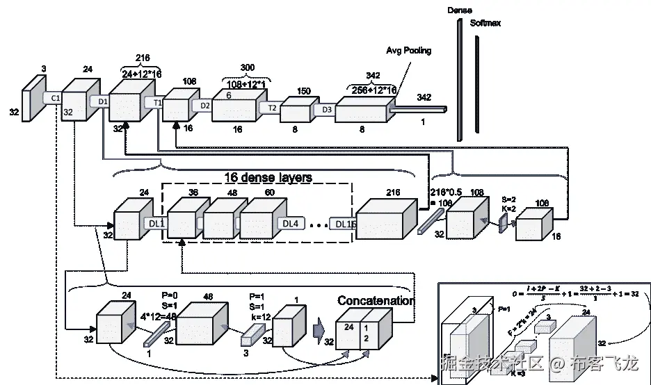 我们可以从图 2 中看出,Conv1 的输出音量确实是 32x32x24。下一步是将这个新卷作为输入引入下面的密集数据块 1 (D1)。