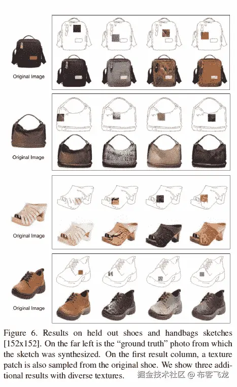 作者首先训练纹理 GAN 来再现地面真实图像,如包或鞋。然后,他们微调网络,使其能够生成逼真的纹理。(见上图)。