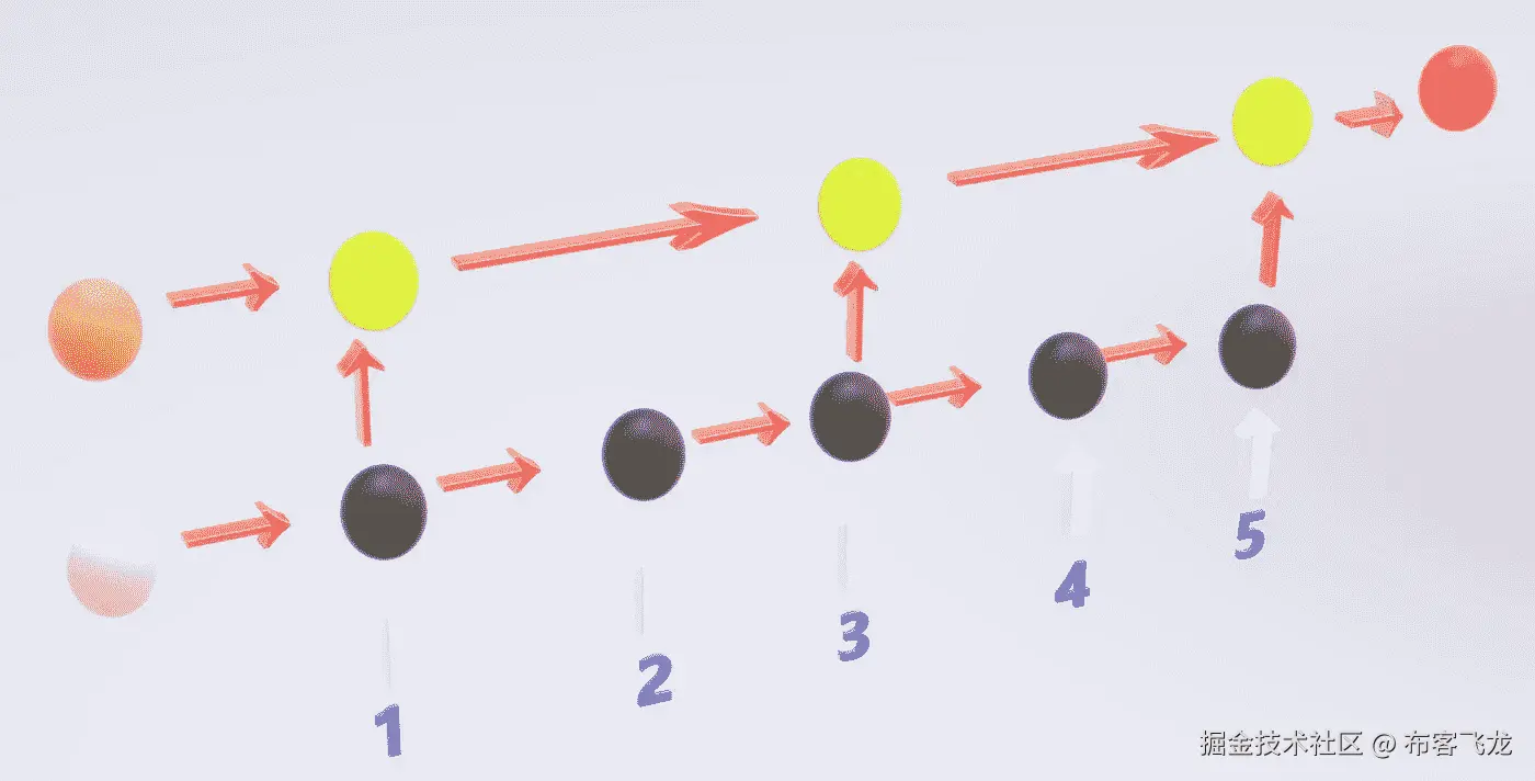 棕色圆圈 →第 2 层隐藏状态 0 石灰圆圈 →第 2 层隐藏状态