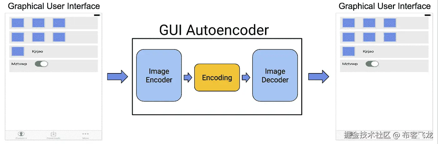 把代码变成图片的问题可以分解成三块。首先,我们需要使用 DSL 来捕获用户界面,以降低问题的复杂性,并使使用深度学习系统变得可行。其次,我们将为每个数据集创建一个自动编码器。第三,我们将使用 Code2Pix 模型中自动编码器的解码器部分,将编码空间转换为呈现 GUI 的像素。