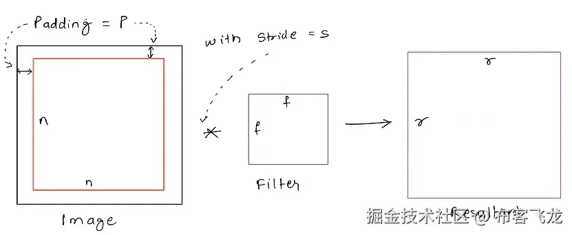如果我们有一个尺寸为n x n的图像,带有一个填充p,它与尺寸为f x f的滤波器进行卷积,步长为s,那么输出尺寸可以使用下面的通用公式来确定: