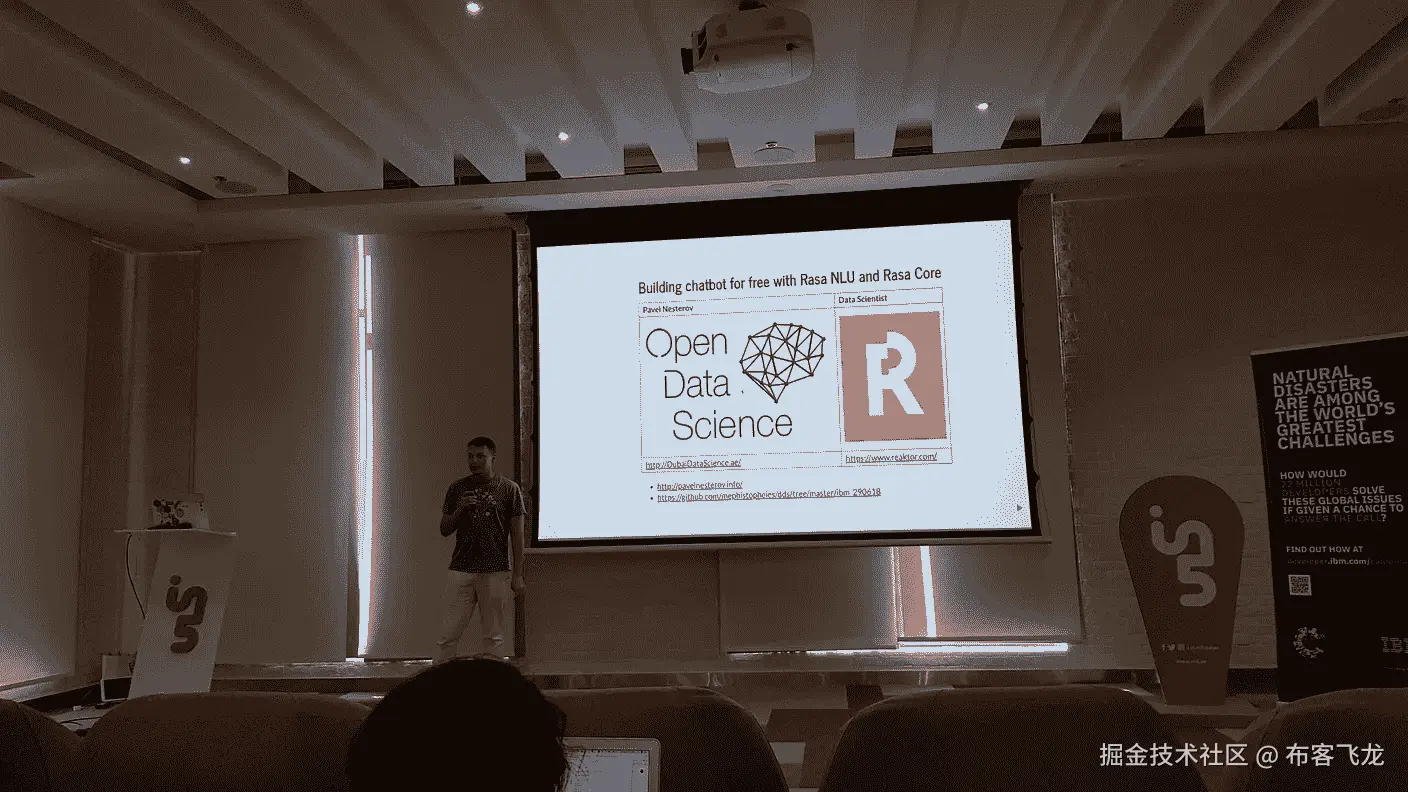 最后,最后一场会议是关于帕维尔·内斯特罗夫使用开源 RASA 工具创建聊天机器人的简短讨论,他向我们展示了一个 Jupyter 笔记本,展示了数据科学家如何使用 RASA 核心创建聊天机器人。