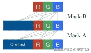— CAE 将一幅图像中的圆和正方形映射到同一幅图像,但分别使用红色和蓝色(着色)。