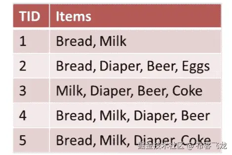 我们将使用一个示例数据集更详细地讨论支持度和置信度。