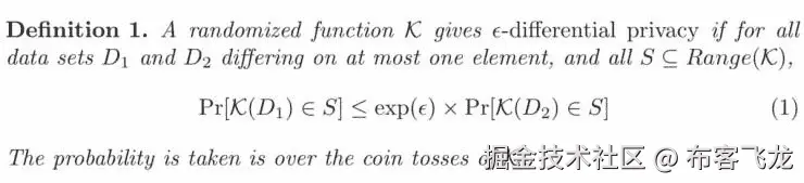 然而,与他/她对从数据中挖掘出的结论的感知相关的个人的伤害或收益不受 DP 概念的保护。DP 的正式(数学)定义如下: