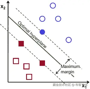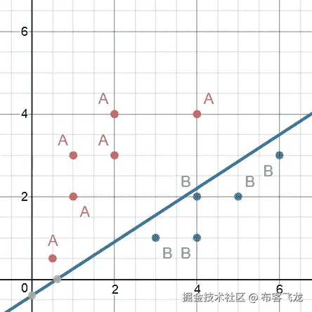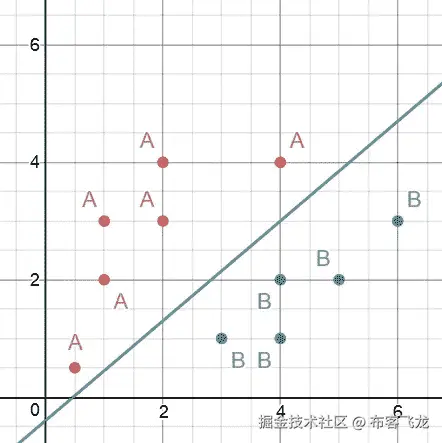 现在,如果我们从相同的数据分布中得到一个新点,我们知道根据我们的蓝线将该点分类到哪里。这条蓝线是从训练好的模型中获得的假设。
