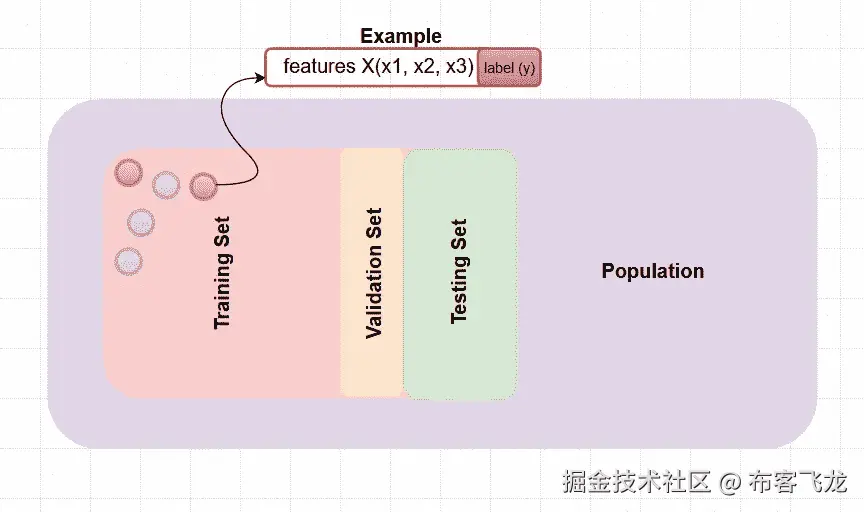 一个例子是包括特征和标签的数据点。手头数据集中可用的示例可能不会完全穷尽数据分布。