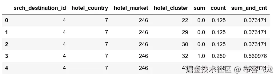df = pd.merge(df, agg_pivot, how='left', on=['srch_destination_id','hotel_country','hotel_market'])