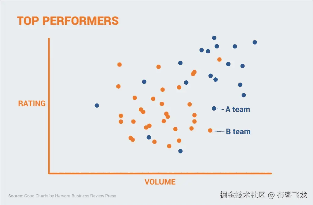 “这一定意味着橙色的点代表表现最好的人,”我们的视觉大脑总结道。