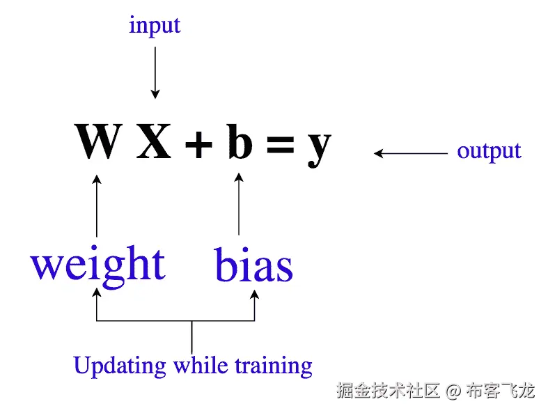 其中 a_n 为系数, X_n 为变量, b 为偏差。正如我们所看到的,这个函数不包含任何非线性,因此只适合于建模线性可分的数据。这很容易理解,因为我们只是使用系数权重 a_n 来加权每个特征变量 X_n 的重要性。我们使用随机梯度下降(SGD)来确定这些权重 a_n 和偏差 b 。查看下图,获得更直观的图片!