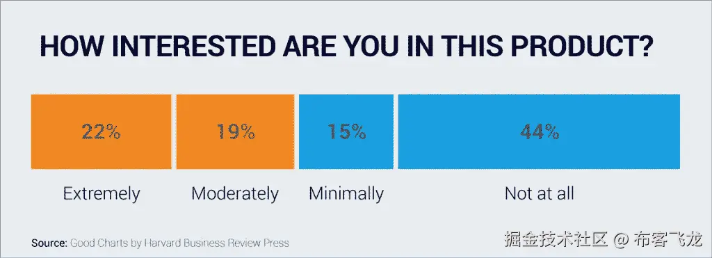 正常情况下,我们会期望人工尺度上的值按顺序排列,从“完全不感兴趣”到“非常感兴趣”但是在这种情况下,值是根据每个响应的百分比排列的。
