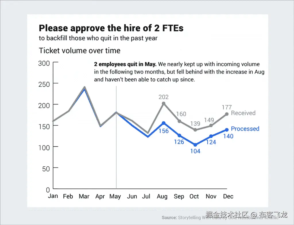 下面是一些如何改进图表和图形的例子,让它们不只是简单地显示数据 ,而是讲述一个故事 ,摘自科尔·努斯鲍默《用数据讲故事一书。