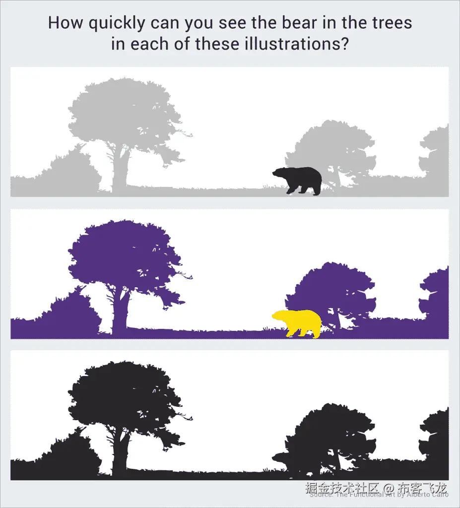 看看下图就知道了。你花了多长时间才看到前两幅插图中的熊?最后一个呢?