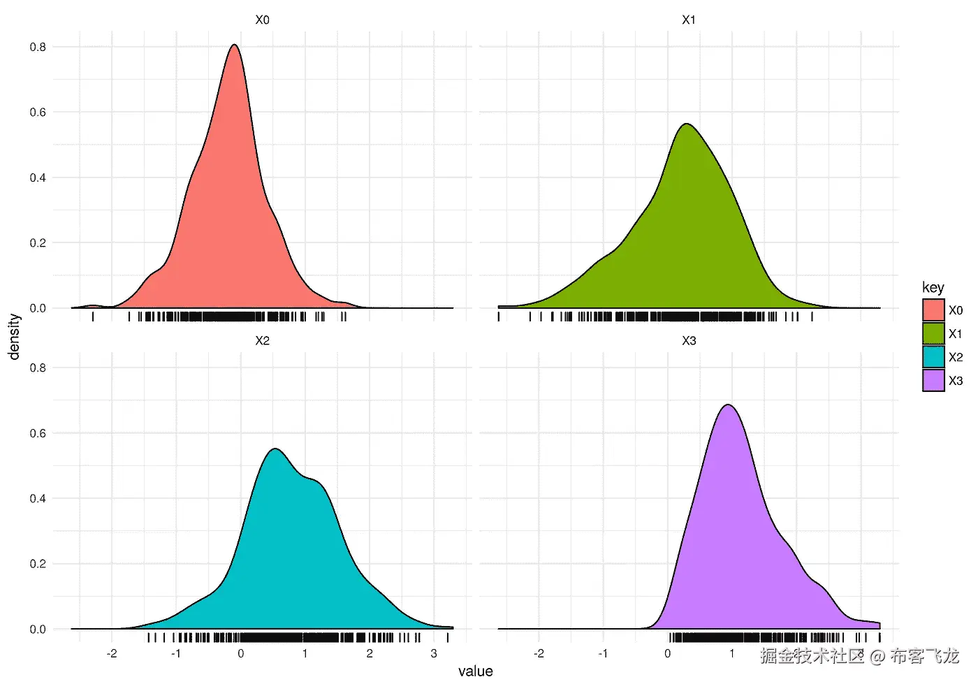 你可以看到 X0 和 X1 应该在 0 左右,而 X2 和 X3 应该在 1 左右。但是如图所示,存在几种其他的解决方案。因此,学习代理自然会考虑到参数应该是什么的不确定性。