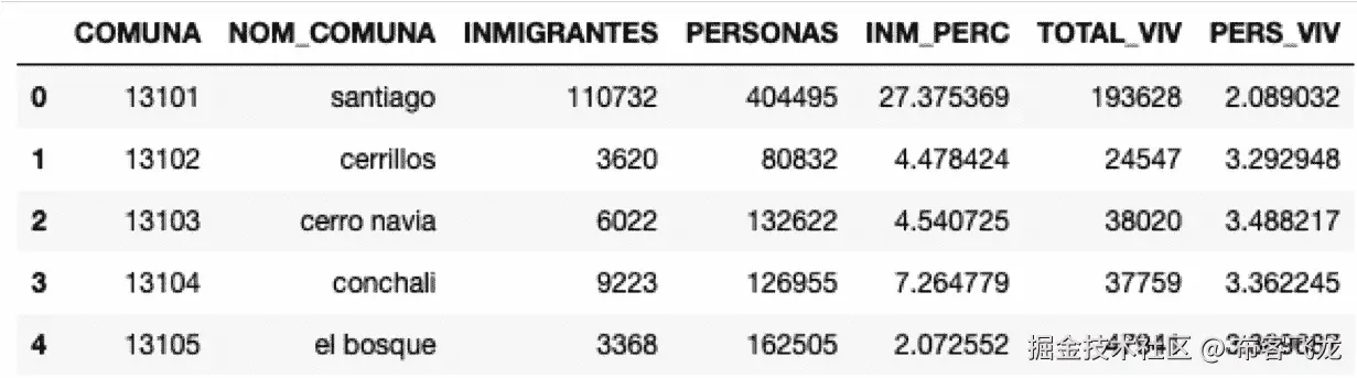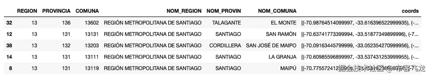 我们可以看到一些数据发生了变化,最重要的是“comuna”的名称,也就是现在的“SANTIAGO”。